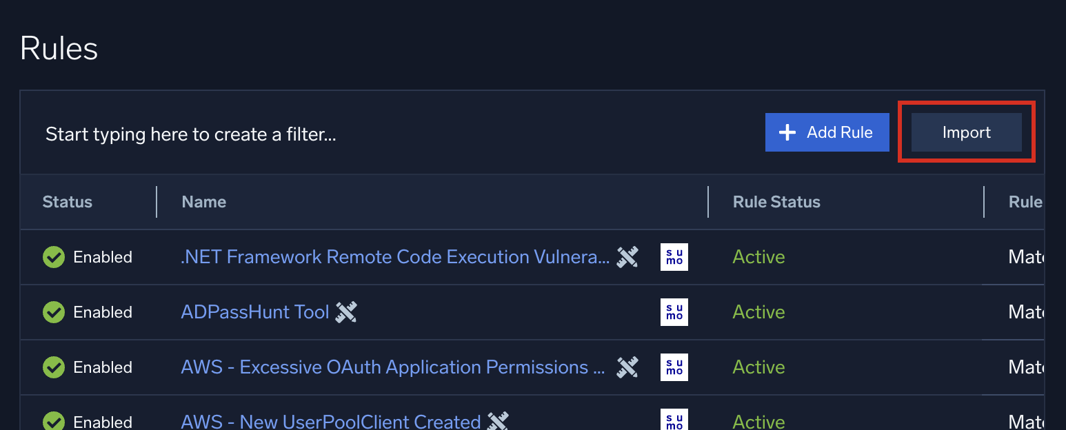 Sometimes you may need to export a rule from one instance of Cloud SIEM and import it to another. You can export and import it as a JSON file.