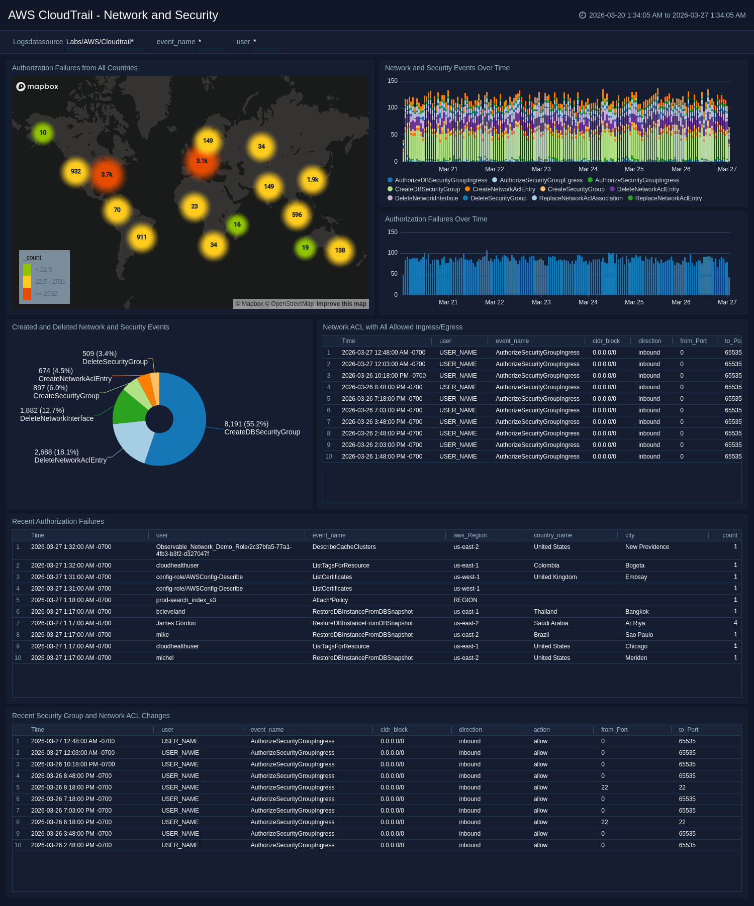 See information about network and security events, authorization failures, security group and network ACL changes, and short-lived critical operations.