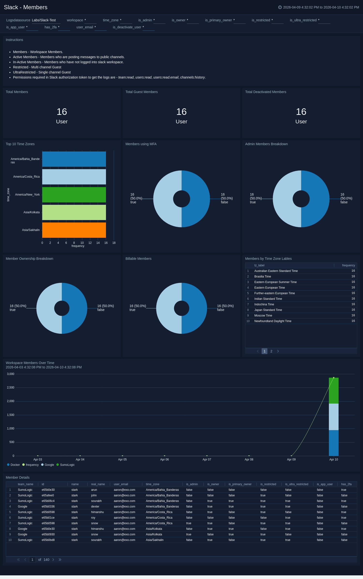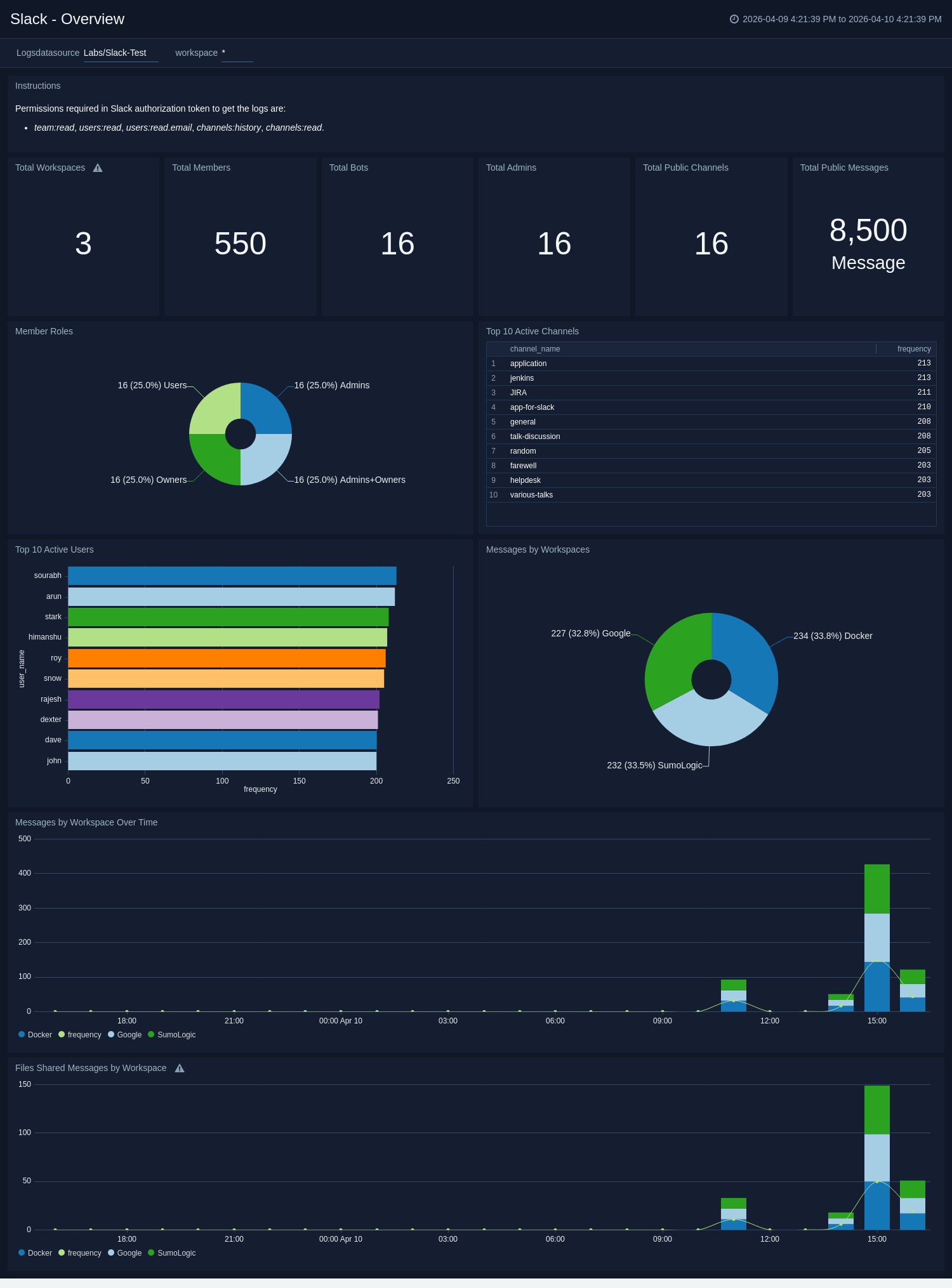 The Sumo Logic app for Slack provides monitoring and data analytics for Slack users, channels, and access logs for workspaces with free, standard, plus, and enterprise plans. The app is focused on public channels only.