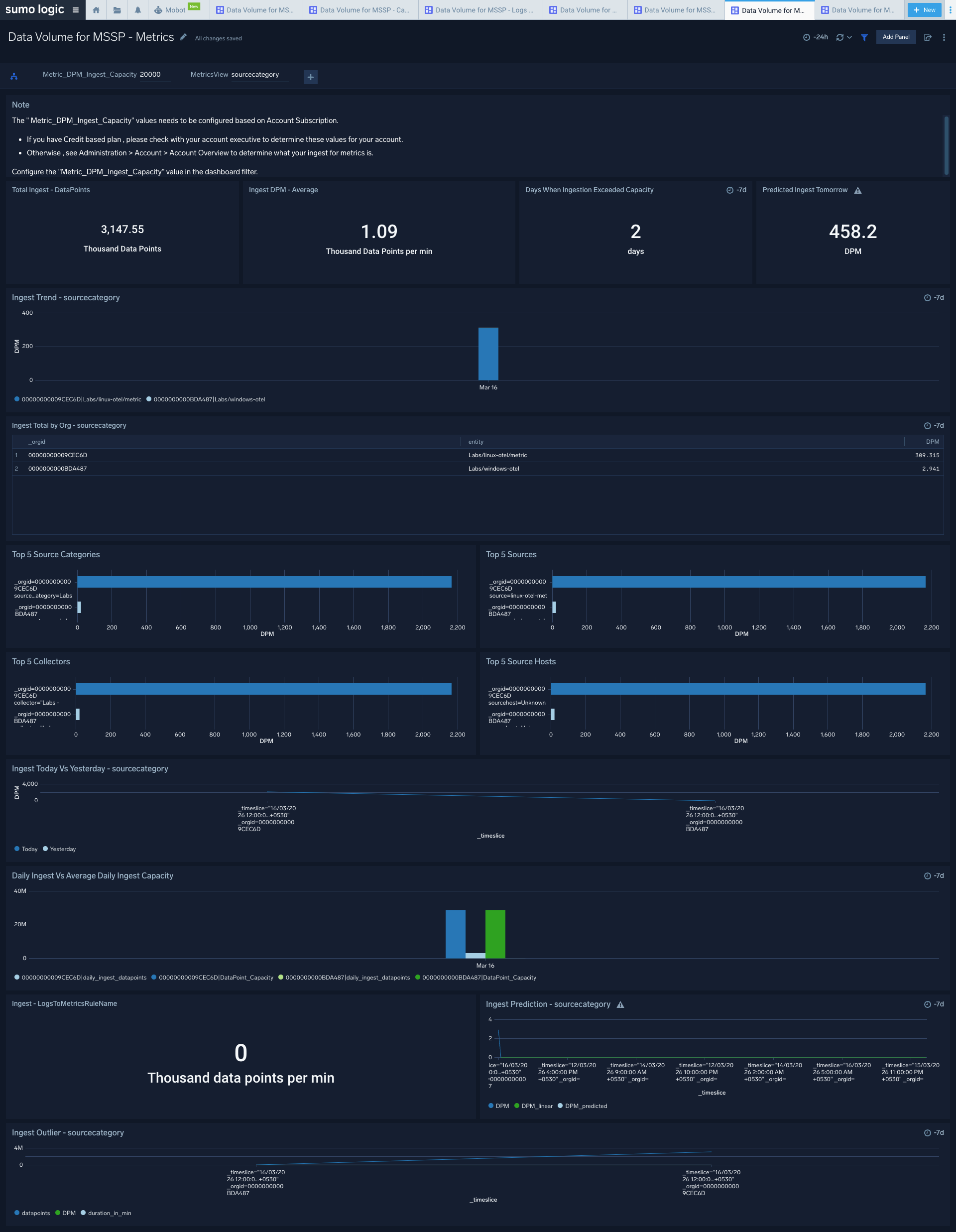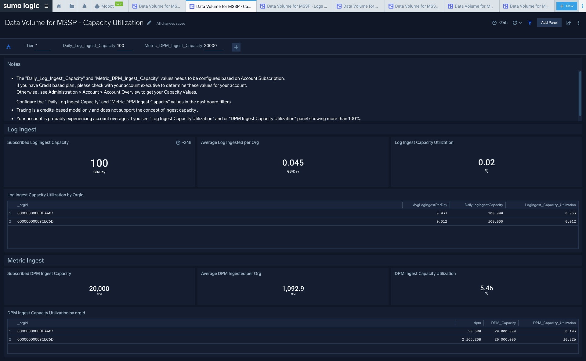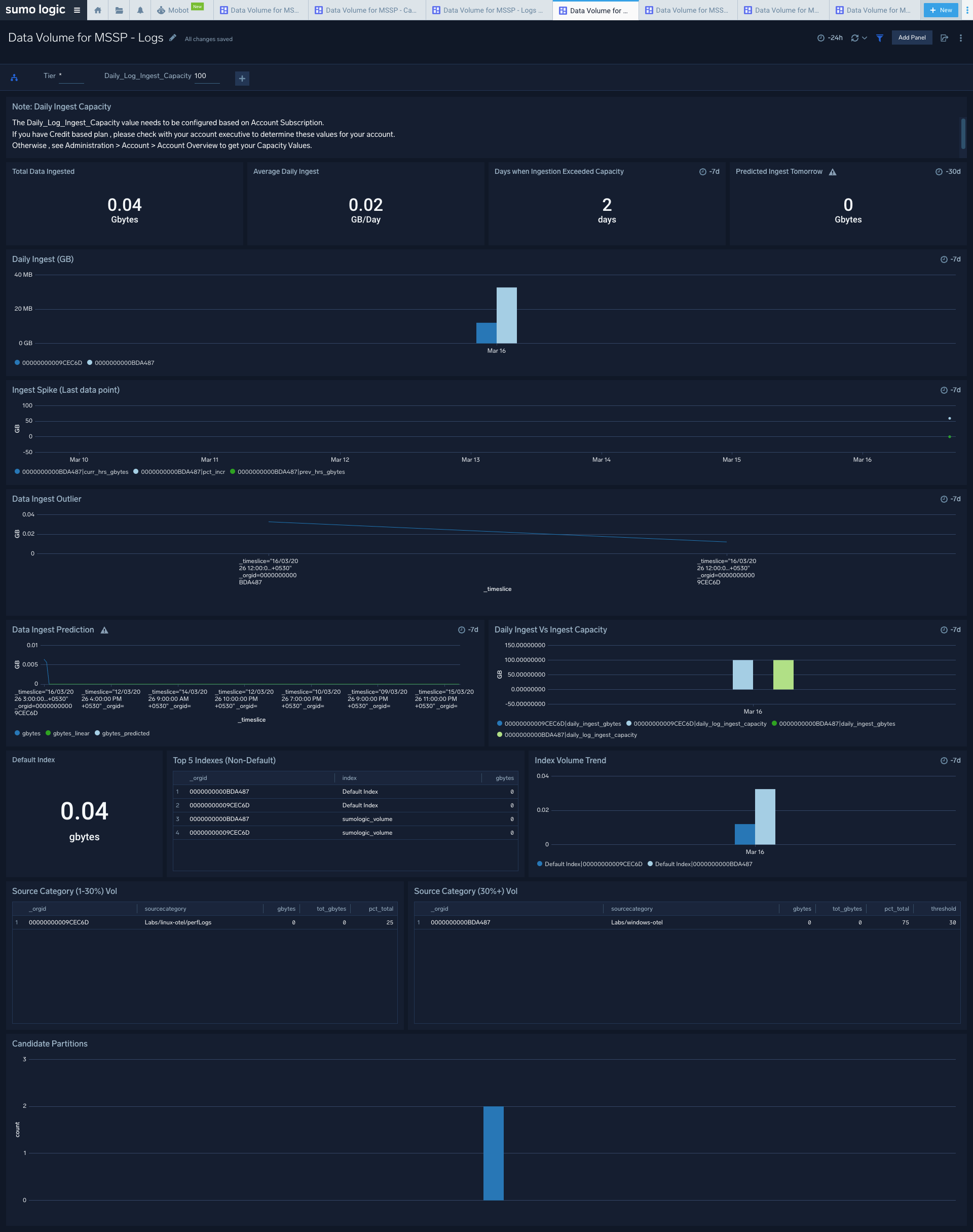 Sumo Logic Data Volume for MSSP
