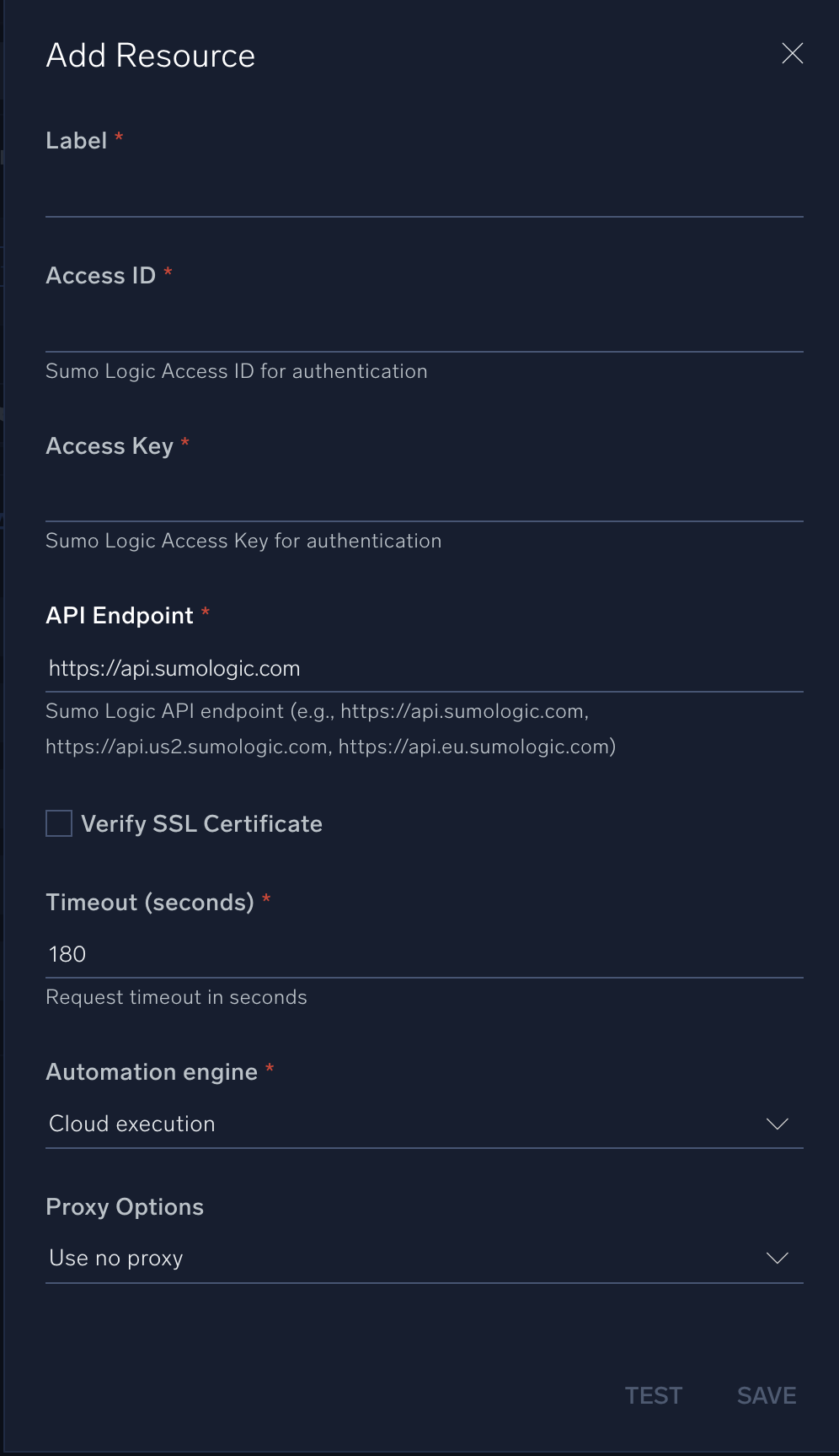 Access Key. Enter the access key corresponding to your Sumo Logic access ID.