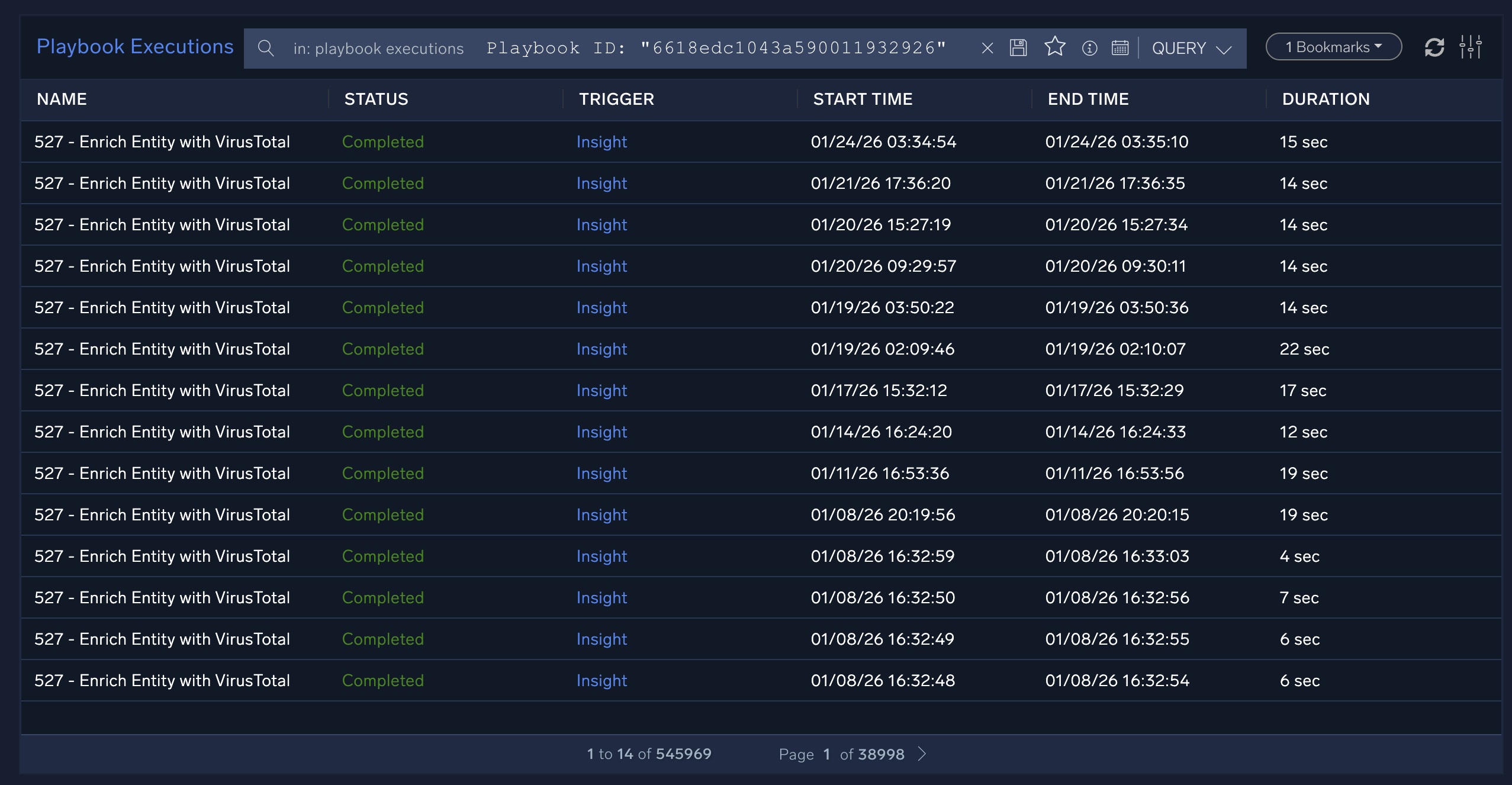 VirusTotal). Executions of all playbooks with that word in their name are displayed. - Enter