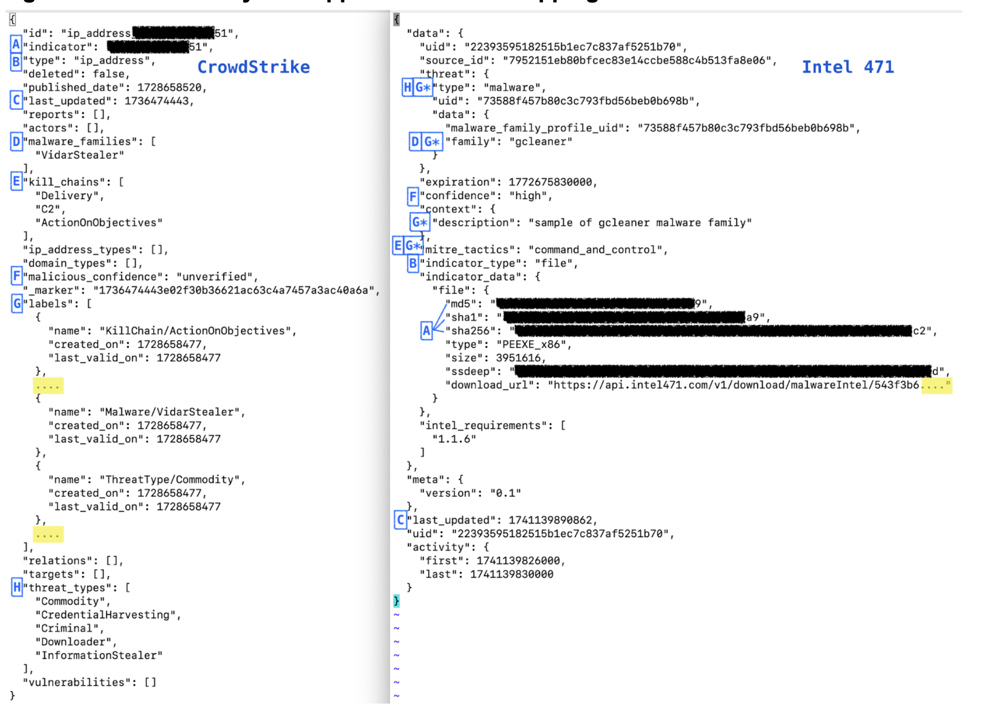last_updated | last_updated | CrowdStrike's timestamps are in epoch seconds whereas Intel 471's are in milliseconds. |